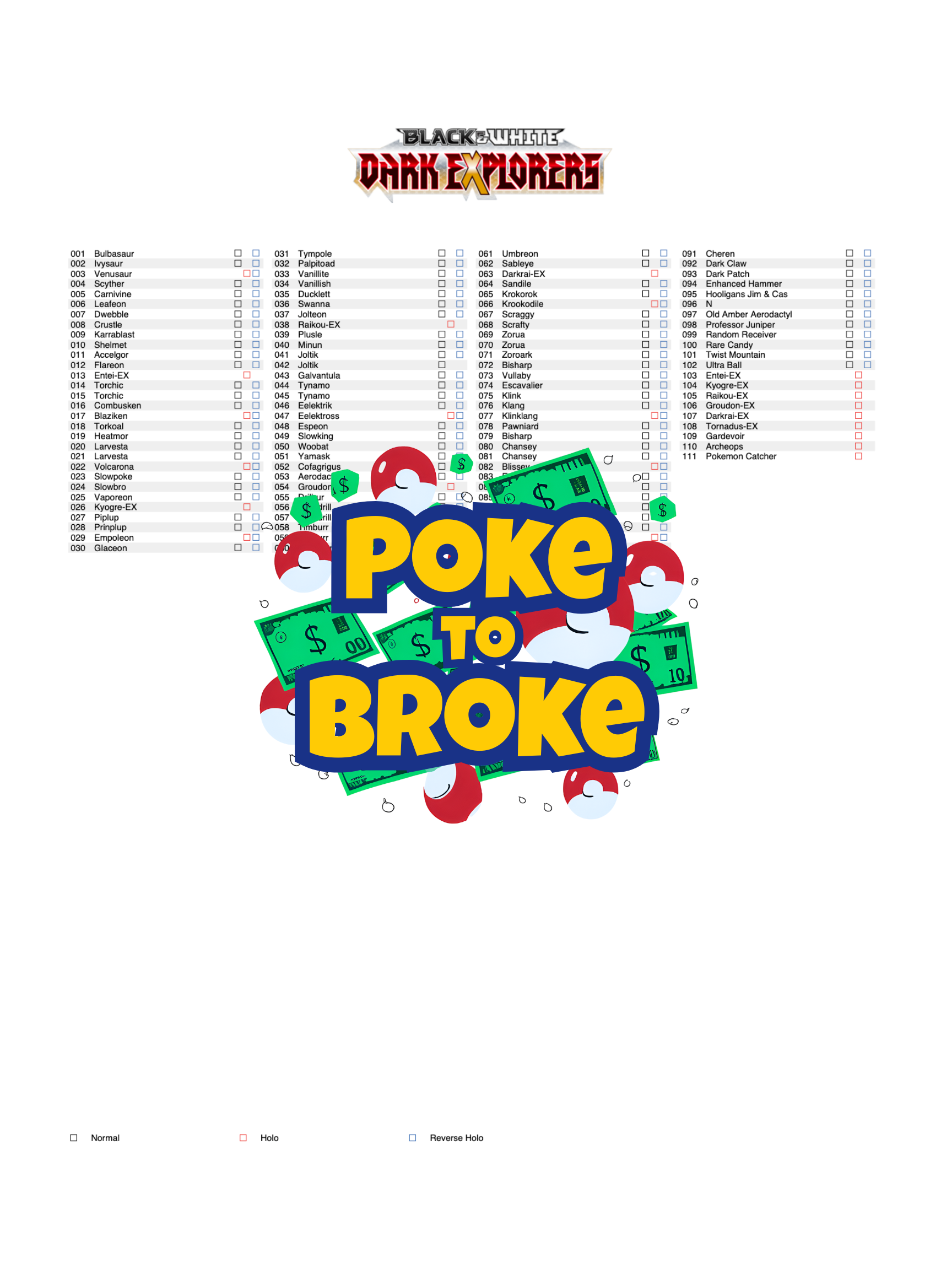 Black & White: Dark Explorers Printable Master and Complete Set Binder Placeholders + Checklist (Digital Download)