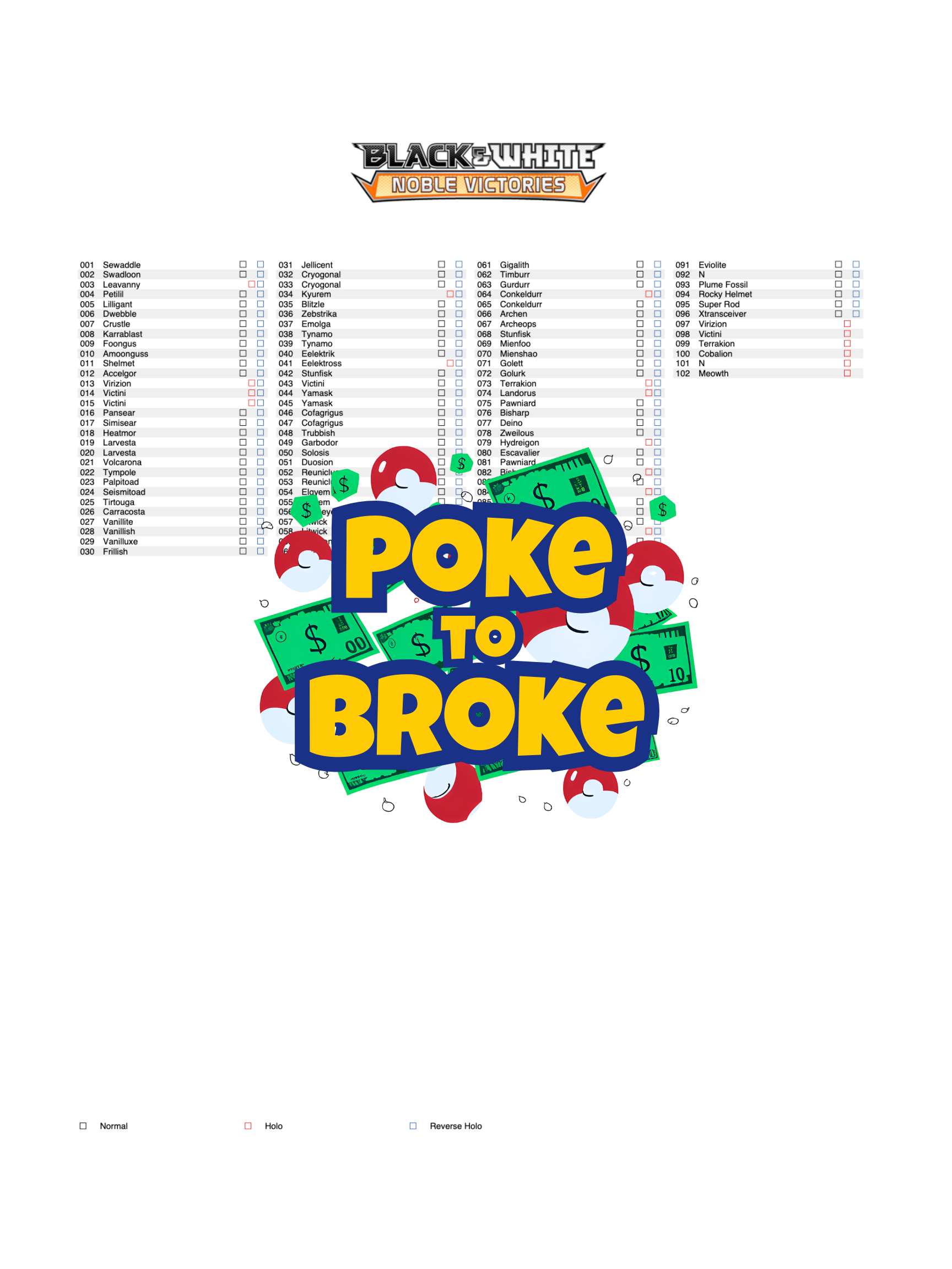 Black & White: Noble Victories Printable Master and Complete Set Binder Placeholders + Checklist (Digital Download)