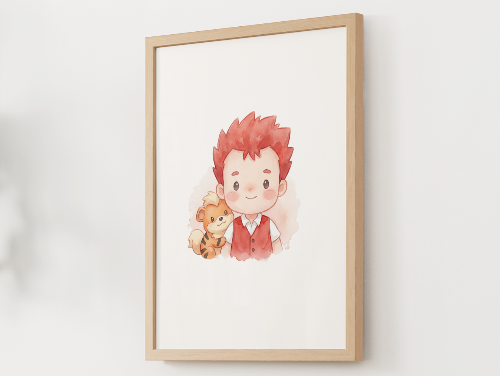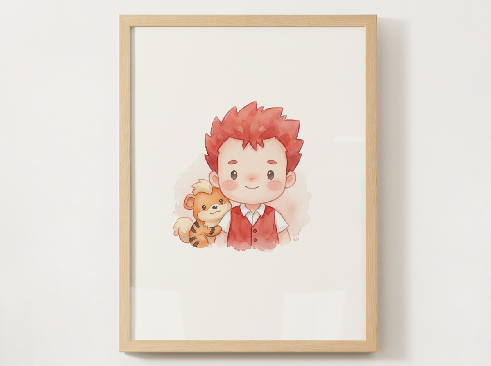 This print captures the classic fire gym leader and loyal partner in a soft nursery friendly watercolor style with a calm, confident feel. It is a perfect fit for a Pokémon themed kids room, a duo collection, or a gift for fans who love Kanto’s fire types.