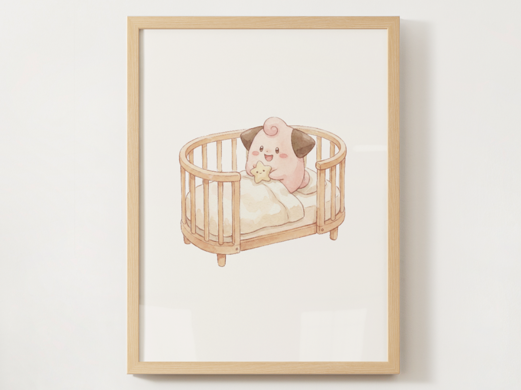 Cleffa Nursery Wall Art Printable, Baby Pokemon in Crib Poster, Cute Kids Room Decor, Pastel Nursery Print, Instant Download