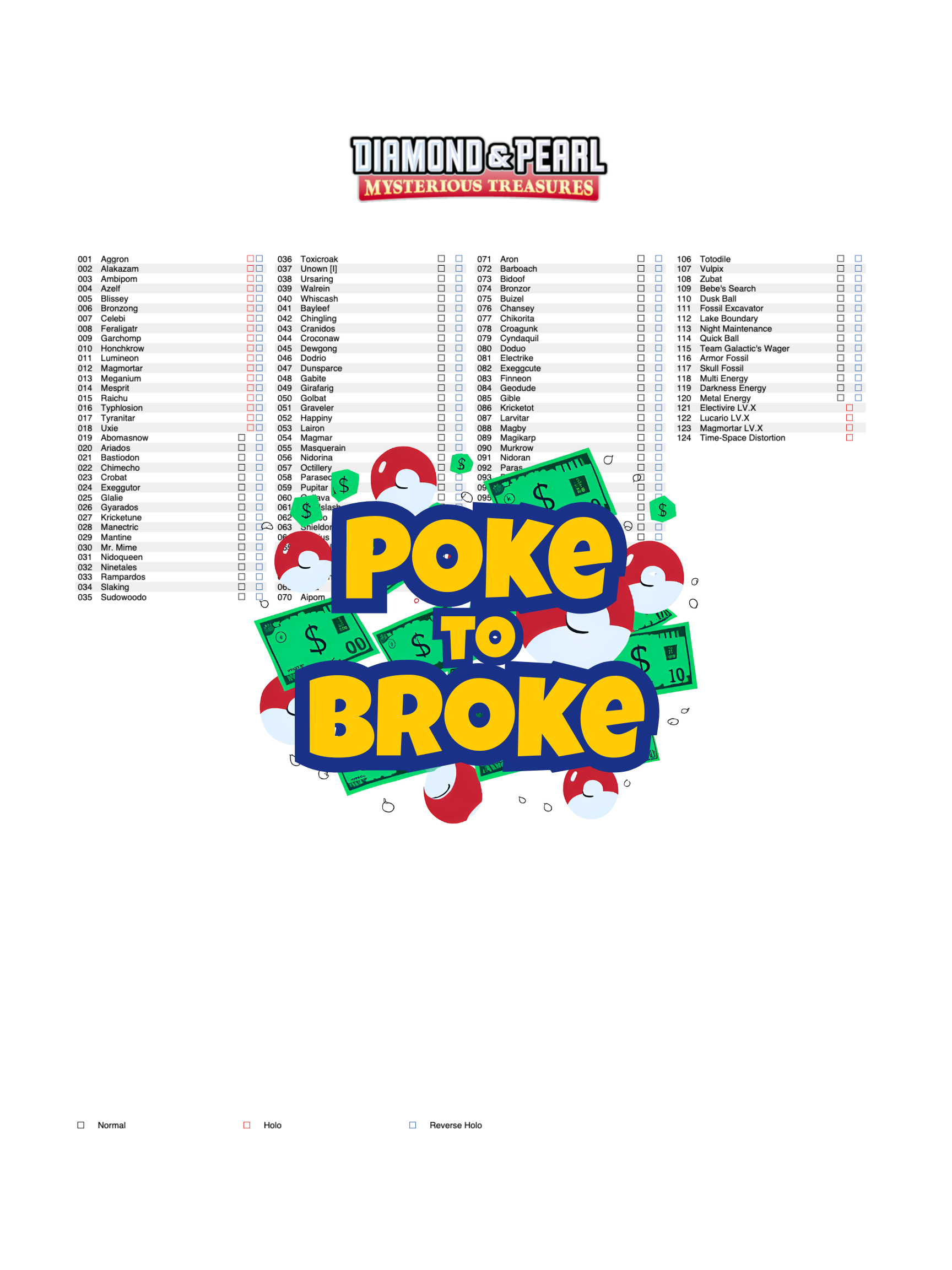 Diamond & Pearl: Mysterious Treasures Printable Master and Complete Set Binder Placeholders + Checklist (Digital Download)