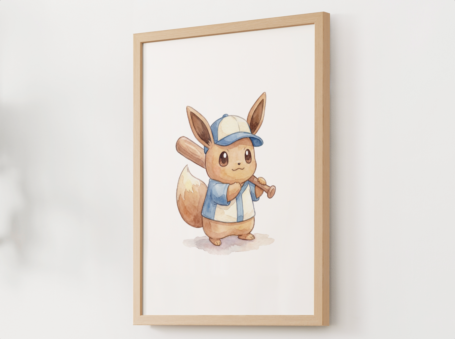 Bring playful ballpark vibes to your nursery or kids room with this Eevee baseball wall poster designed to feel clean, fun, and frame ready. This single print features Eevee in a baseball themed scene styled with soft colors and a calm, centered layout that keeps the design energetic yet nursery friendly.