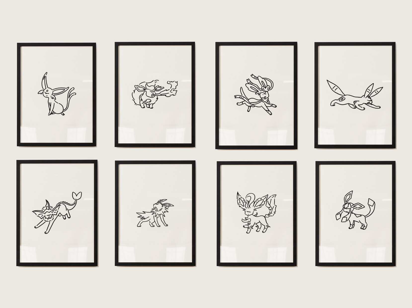 Eevee Evolutions Wall Art Bundle, 9 Minimal Line Prints, Instant Digital Download