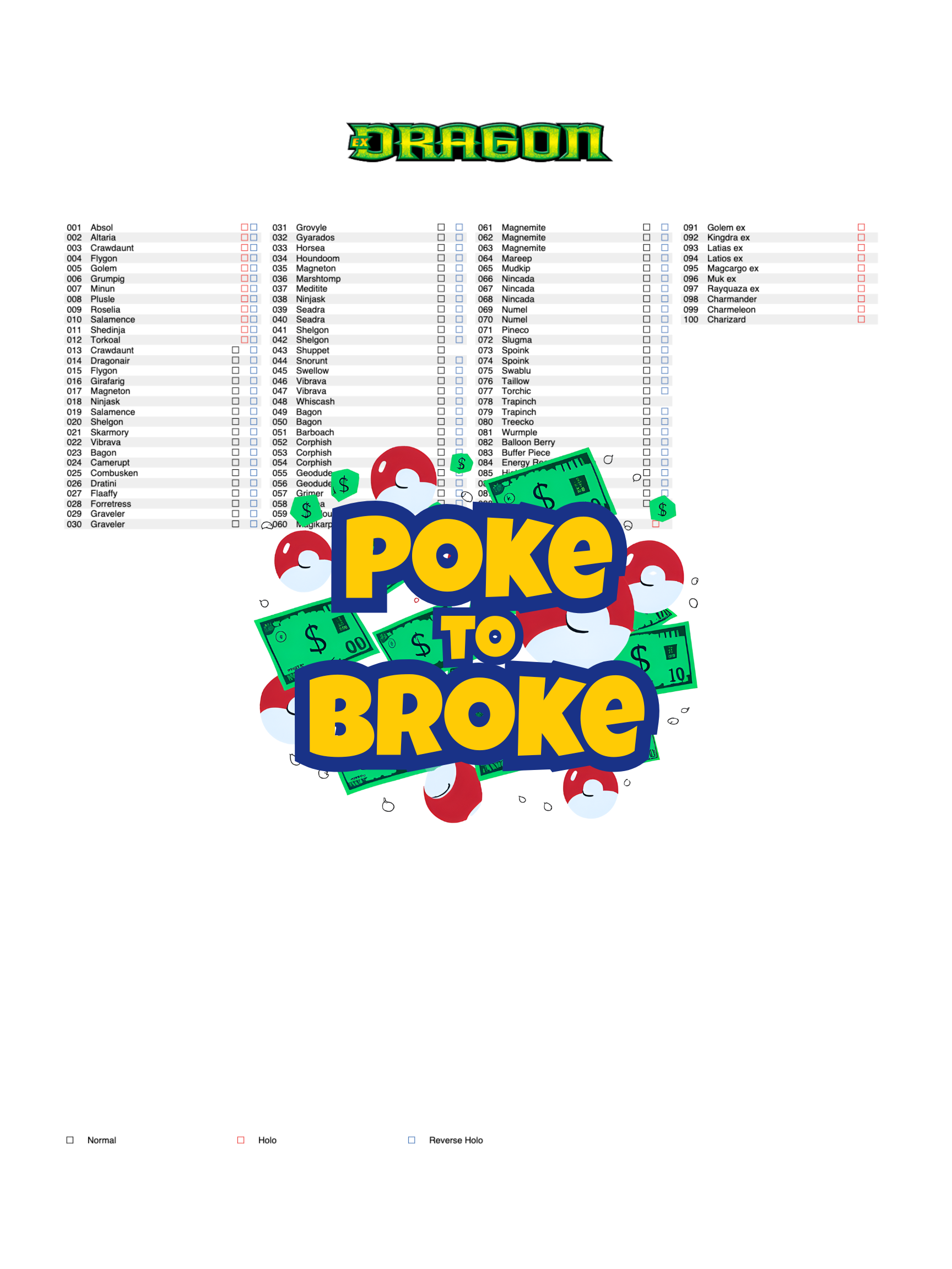 Whether you are after Dragonite ex, Salamence ex, or building a true master set, these printouts give every card a proper space and eliminate blank binder pages.