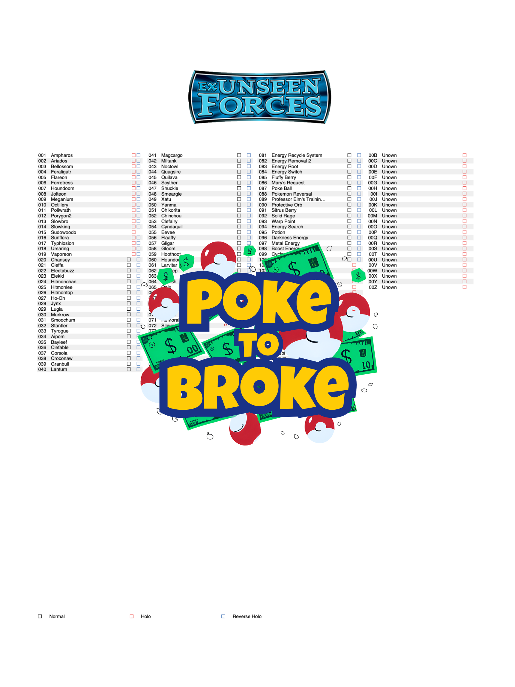 EX: Unseen Forces Printable Master and Complete Set Binder Placeholders + Checklist (Digital Download)