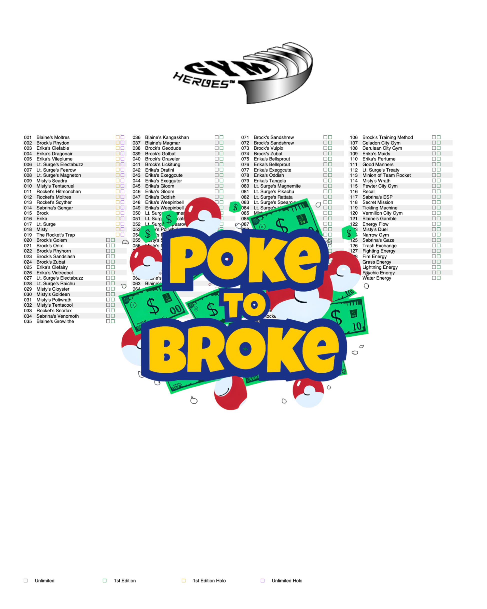Gym: Heroes Printable Master Set Binder Placeholders + Checklist (Digital Download)
