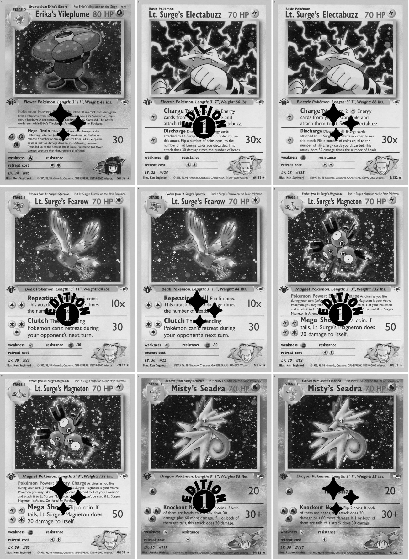 ✔ Includes every version of each card number including holo and non holo placements