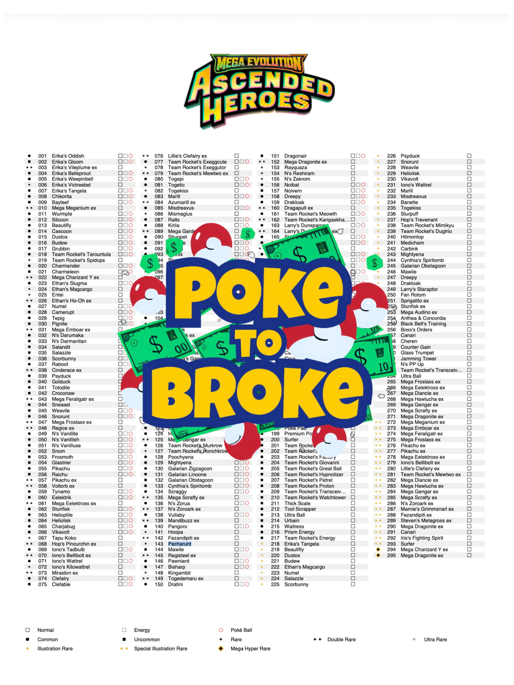 Mega Evolution: Ascended Heroes Set Printable Master and Complete Set Binder Placeholders + Checklist (Digital Download)