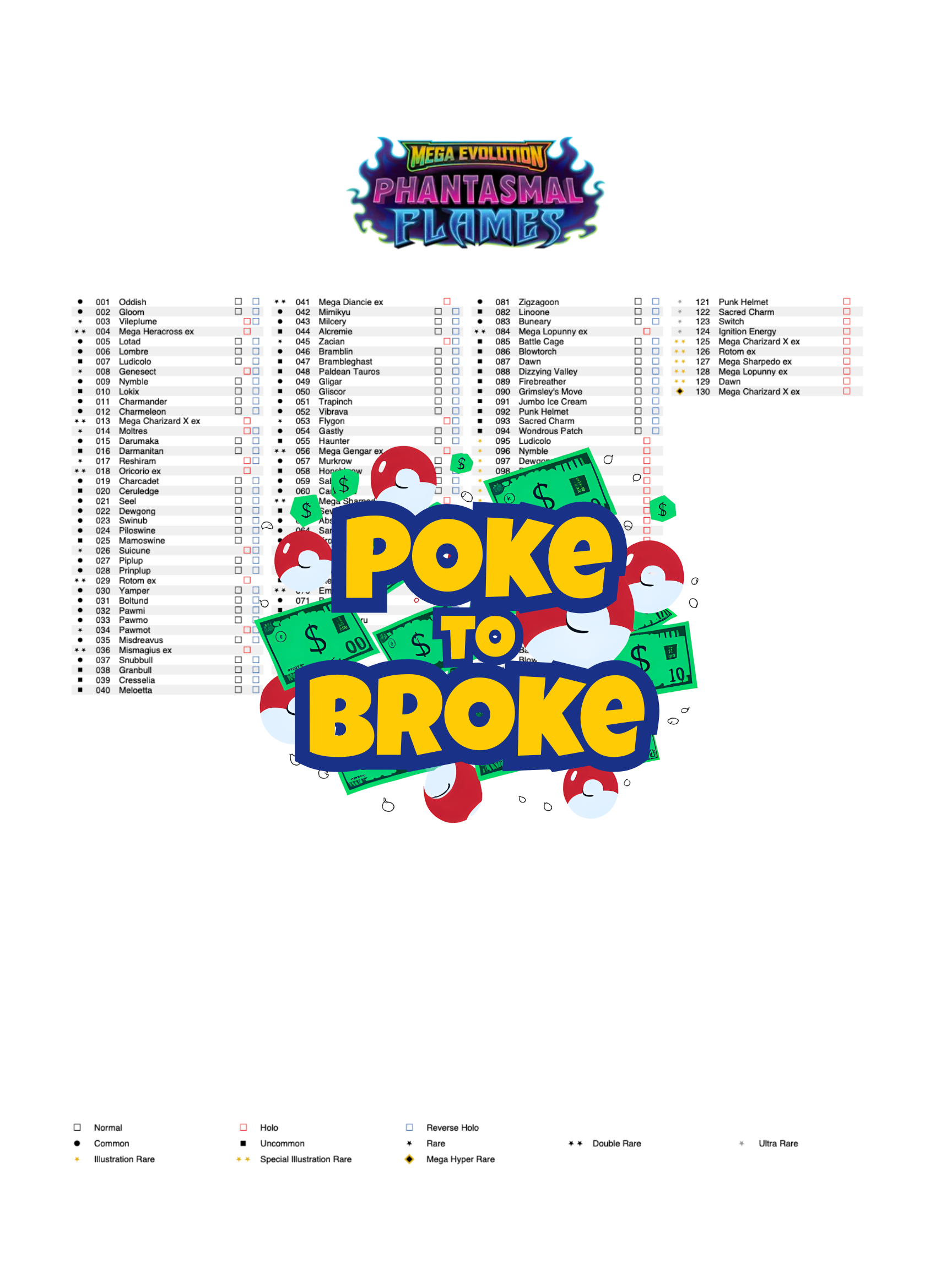 Mega Evolution: Phantasmal Flames Set Printable Master and Complete Set Binder Placeholders + Checklist (Digital Download)