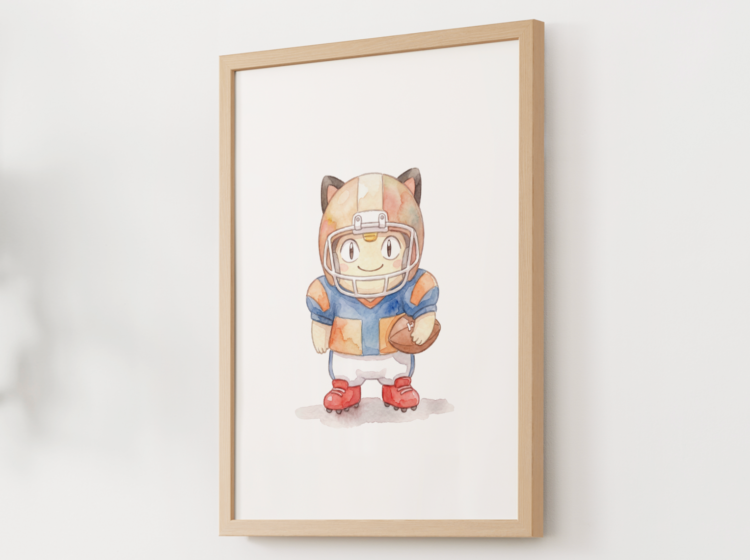 Meowth Football Wall Art, Cute Game Day Nursery Poster, Kids Room Decor, Printable Digital Download