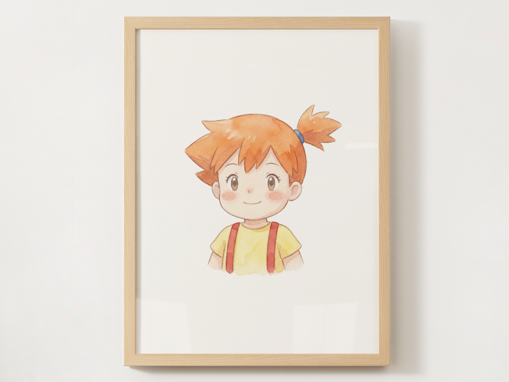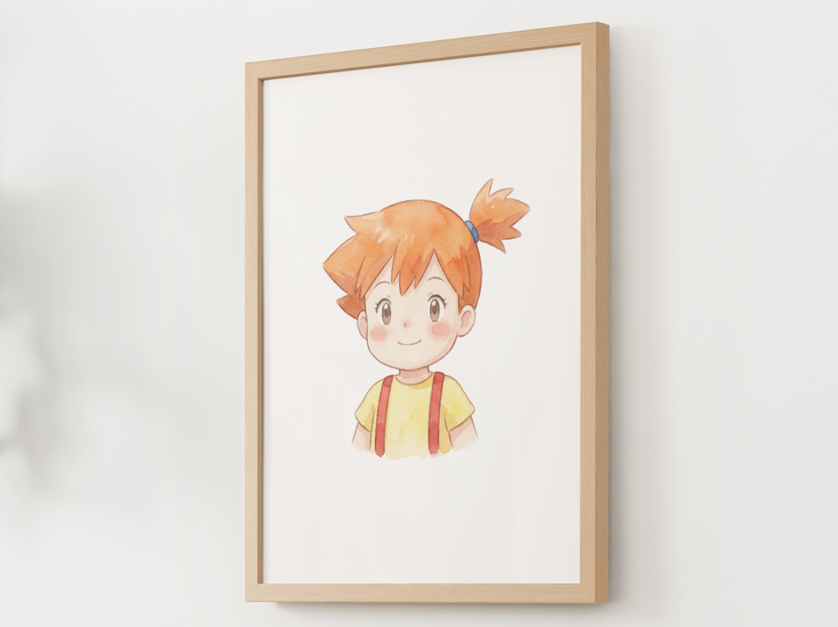Bring classic Kanto gym leader nostalgia to your nursery or kids room with this Misty poster designed to feel clean, bold, and frame ready. This print features Misty styled in a soft, kid friendly layout that keeps the design bright and character focused while still looking polished and cohesive.