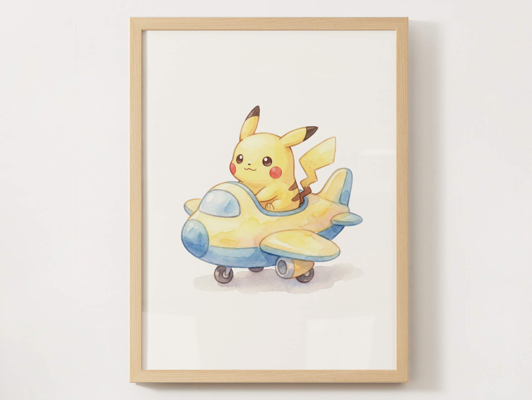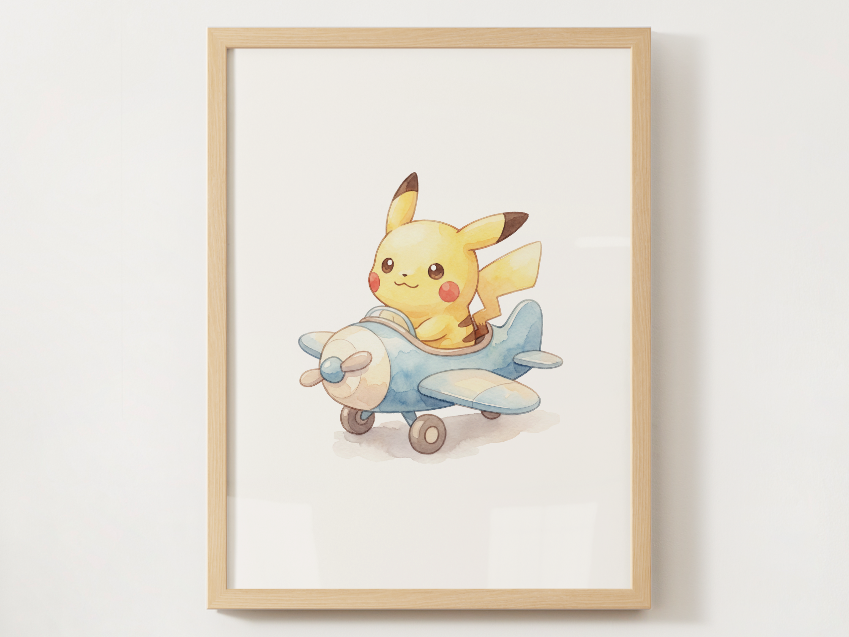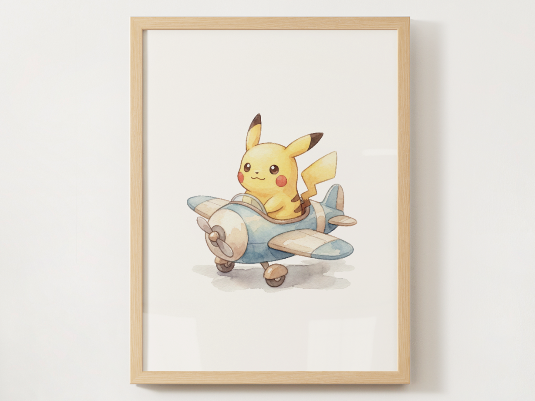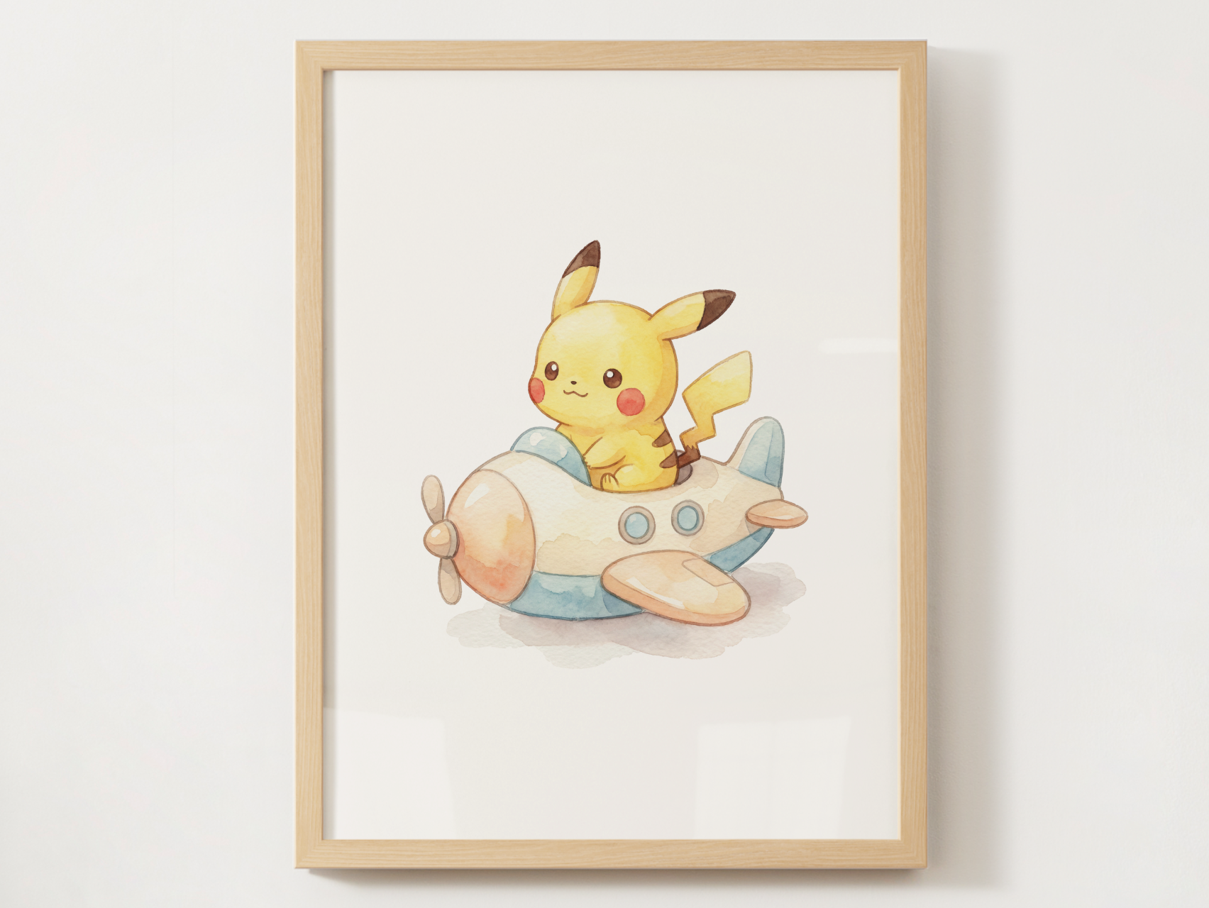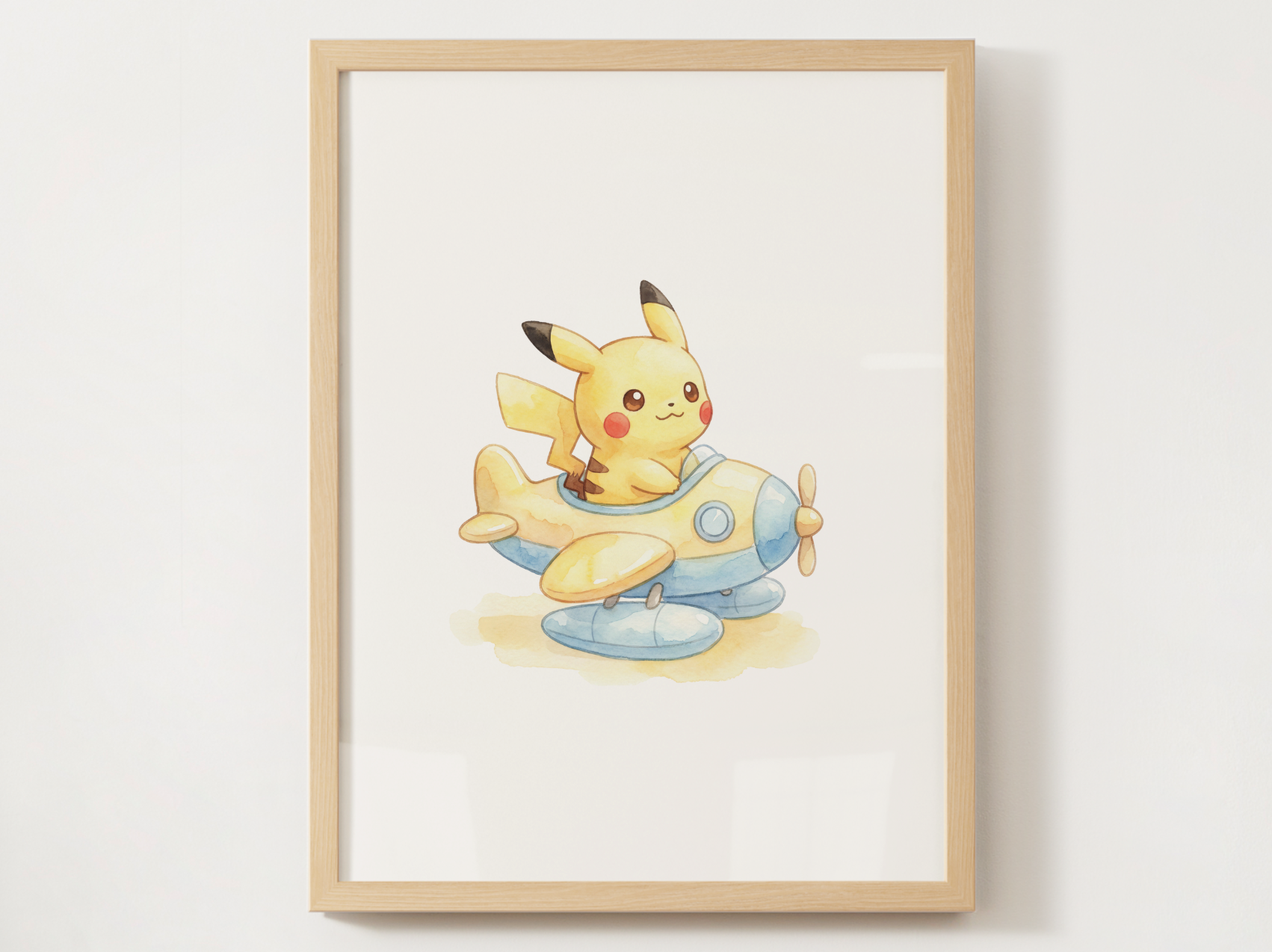 Bring sky high Pikachu cuteness to your nursery or kids room with this 6 print airplane bundle designed to feel soft, clean, and frame ready. Each poster features Pikachu in a different plane with gentle colors and a calm, centered layout that keeps the set cozy and easy to match with neutral and pastel rooms.
