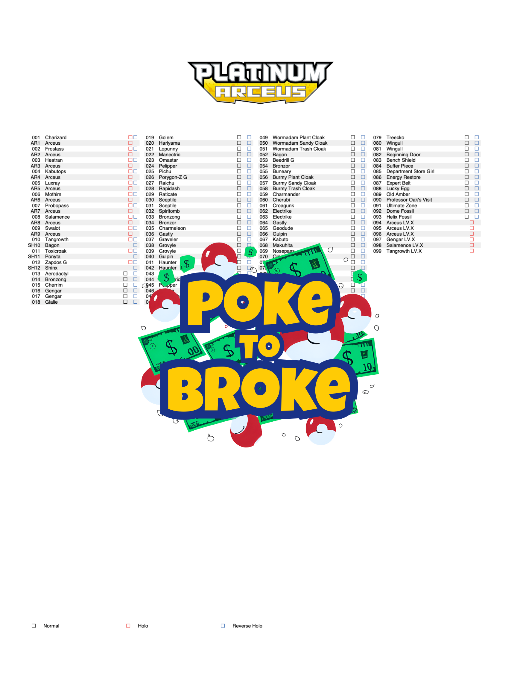 ✔ Covers all Arceus forms, LV.X cards, and secret rare placements required for a true master set layout