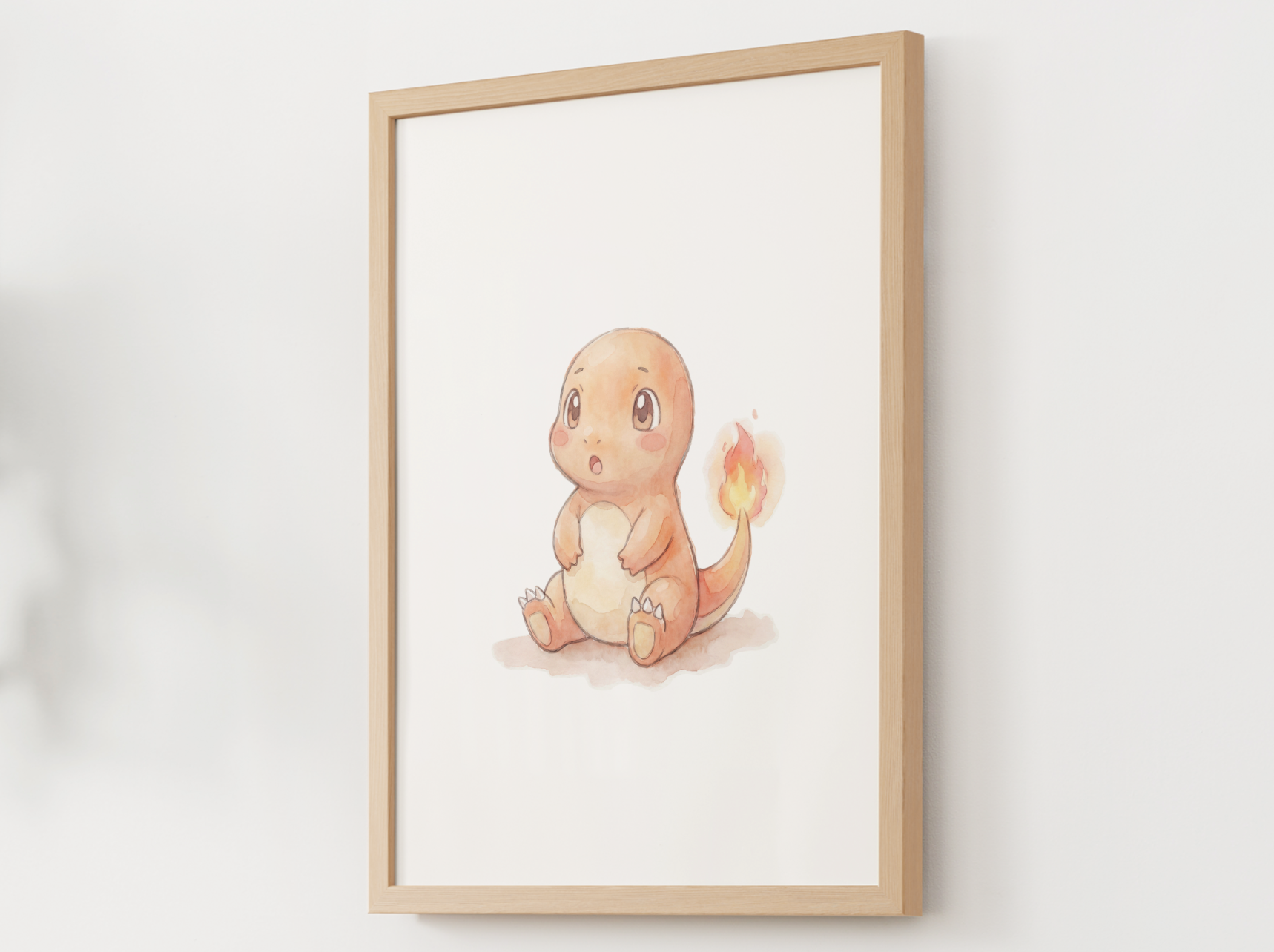 This print captures Charmander’s wide eyed, open mouth surprise in a soft nursery friendly watercolor style. It is a perfect match for baby rooms, kids bedrooms, and playrooms, especially if you are building a full emotions collection.