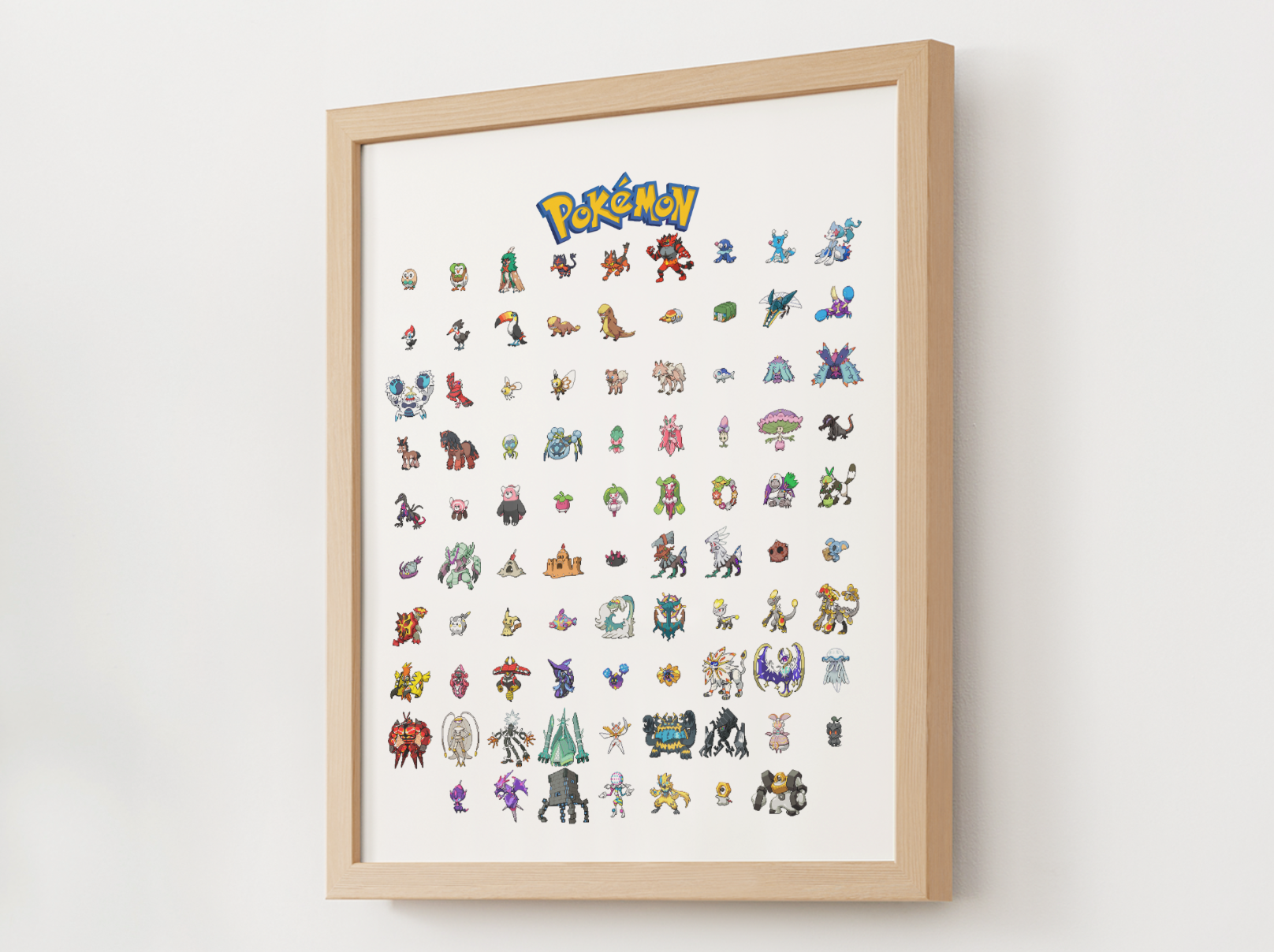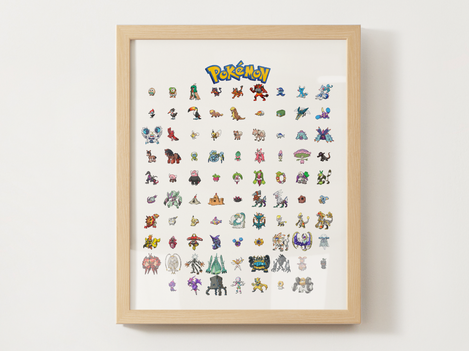 Bring the Alola region to life with a full Gen 7 Pokédex poster designed in a polished, pixel-inspired style. Every Pokémon from the Alola era is arranged in a bright, organized grid beneath the classic Pokémon logo, giving your wall the look of a completed Pokédex page.