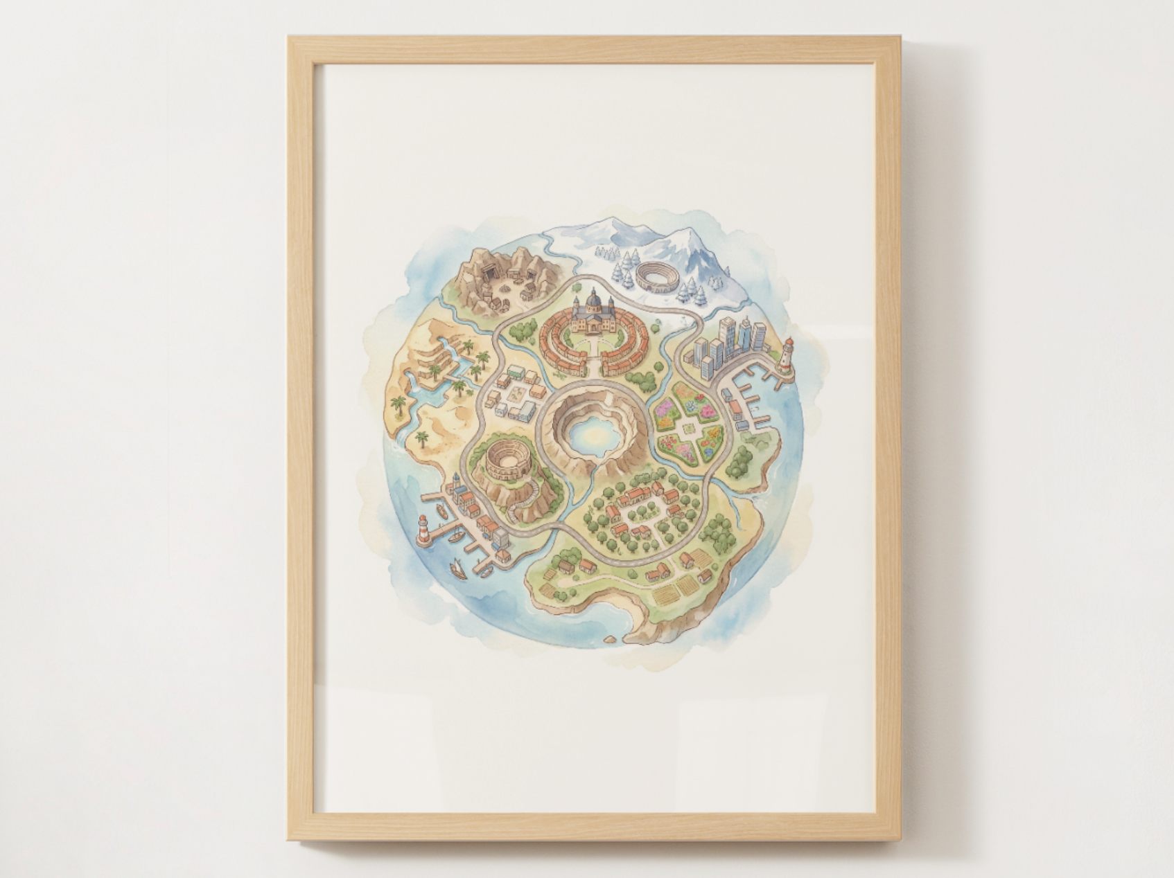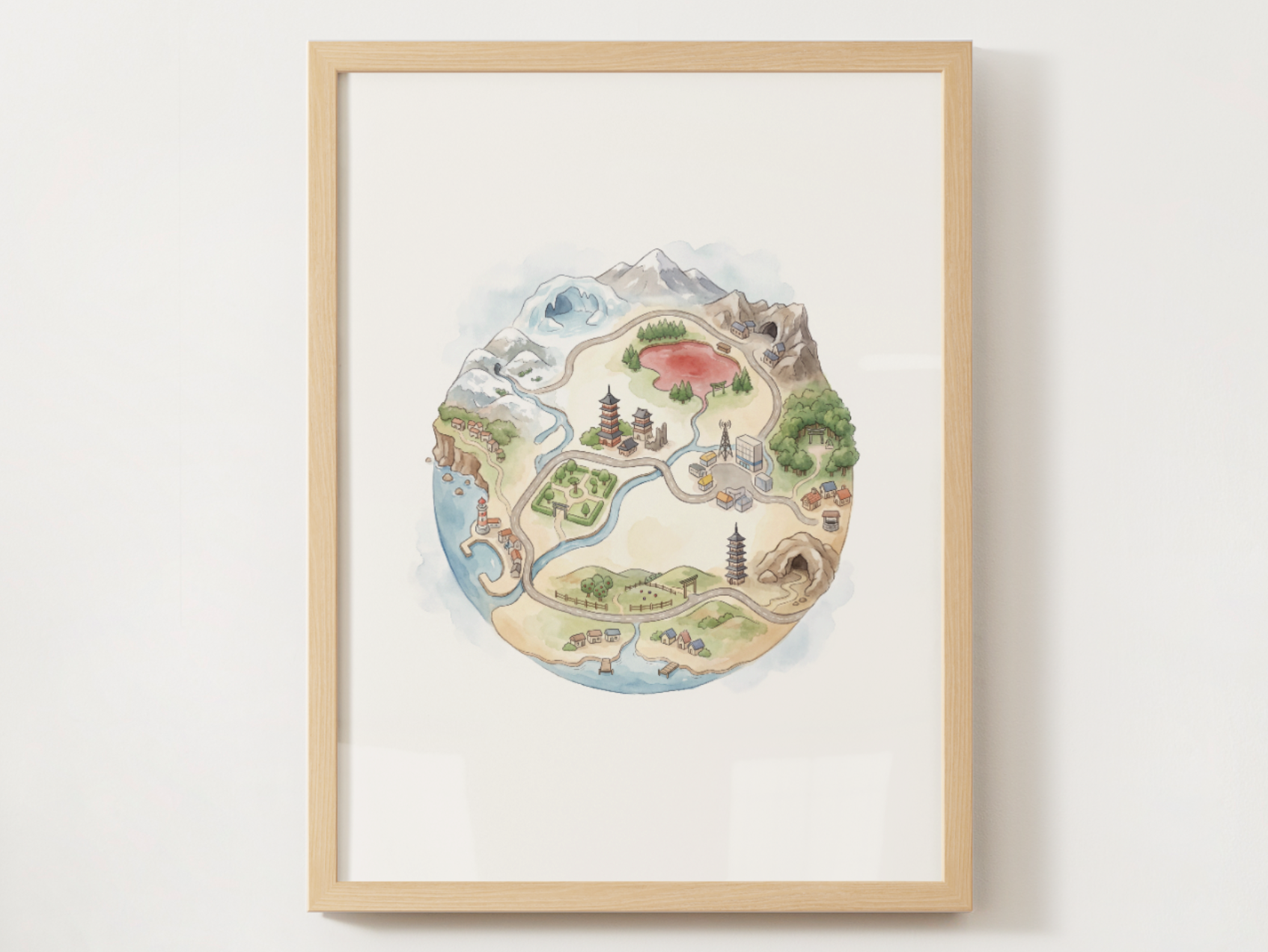 This set brings together all nine main Pokémon regions in one cohesive collection. Each piece keeps the same soft watercolor globe look, so the whole wall feels consistent, cozy, and instantly recognizable for fans without looking like a literal map.