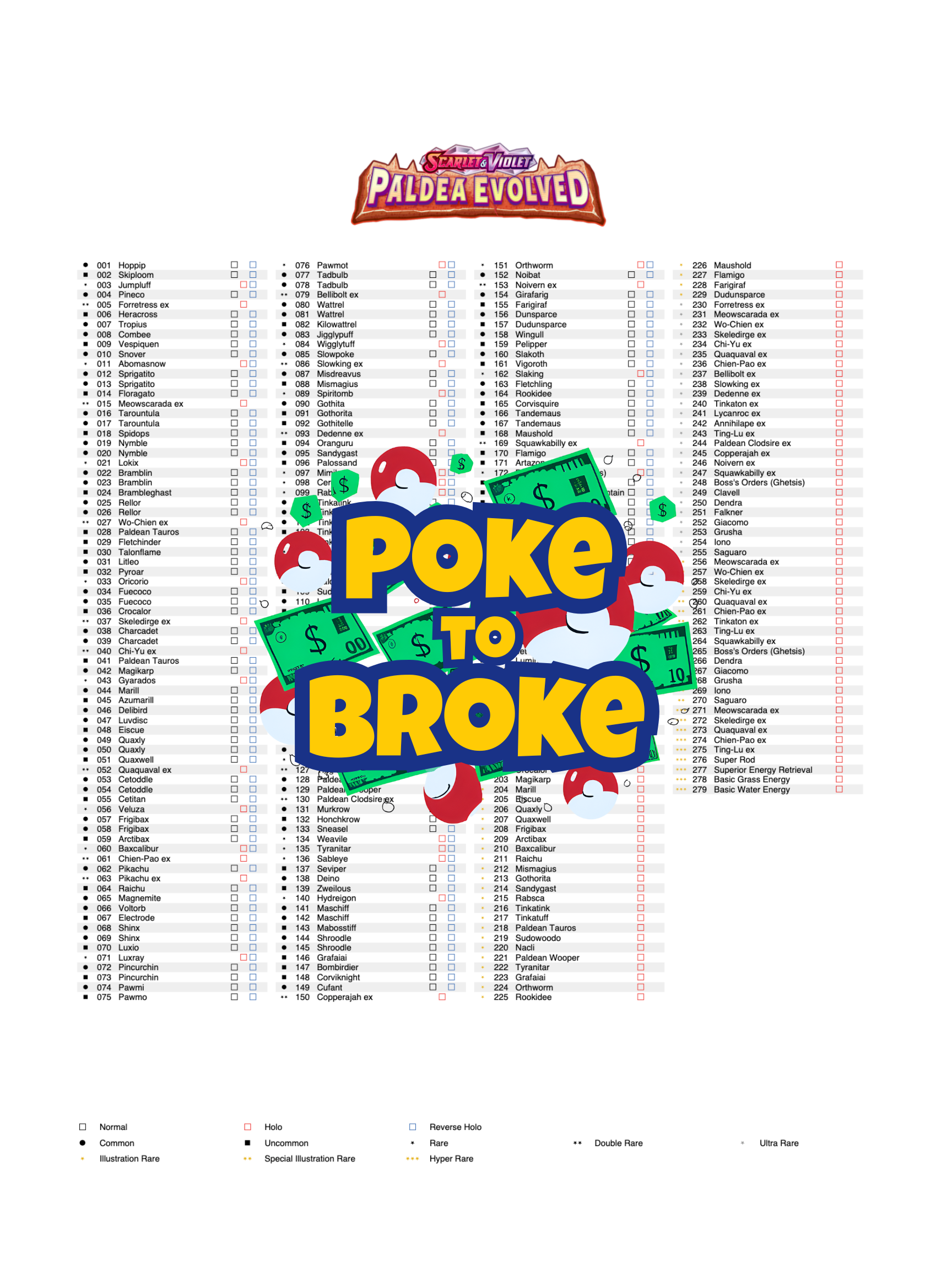 Scarlet & Violet: Paldea Evolved Printable Master and Complete Set Binder Placeholders + Checklist (Digital Download)