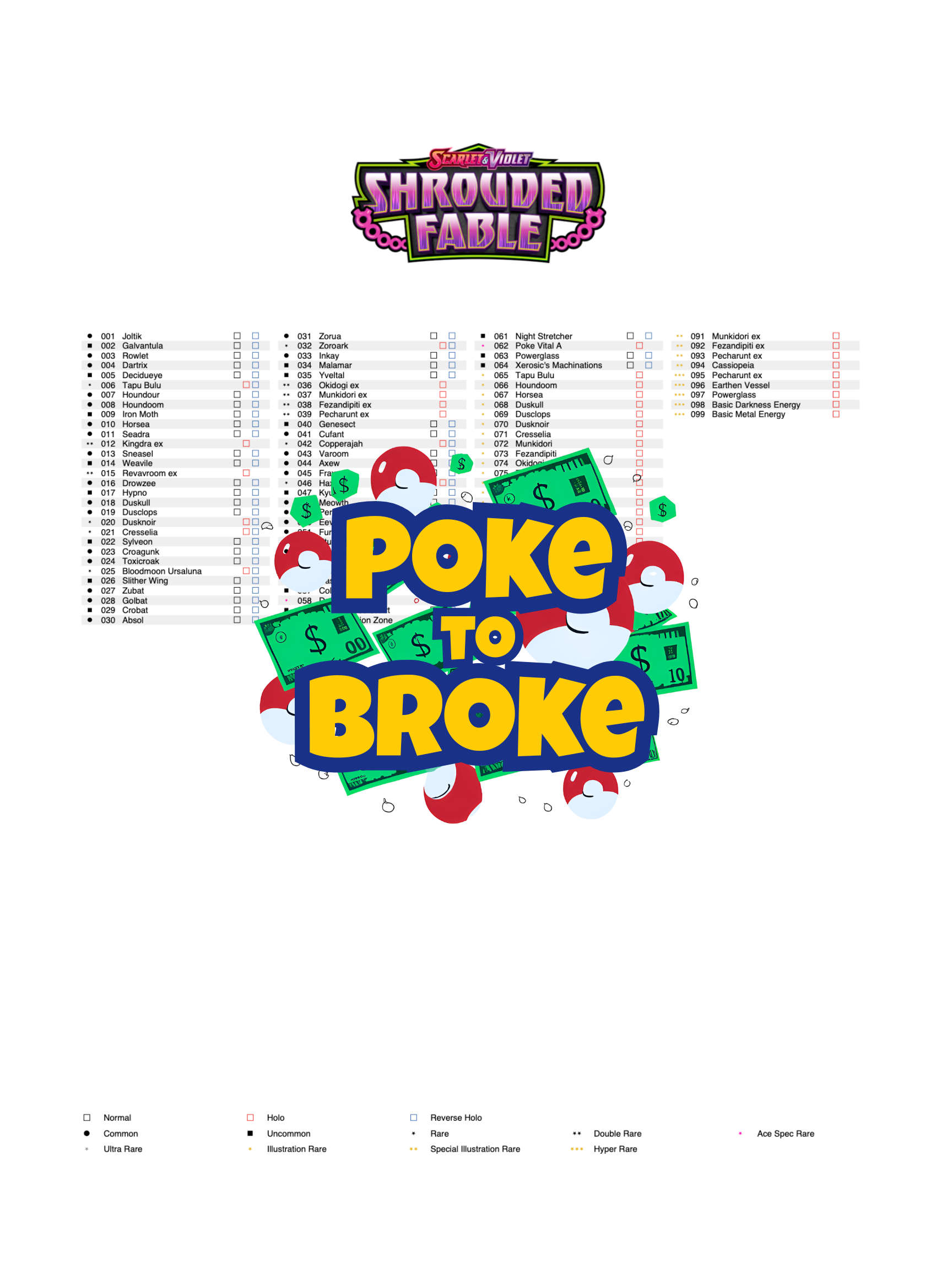 Scarlet & Violet: Shrouded Fable Printable Master and Complete Set Binder Placeholders + Checklist (Digital Download)
