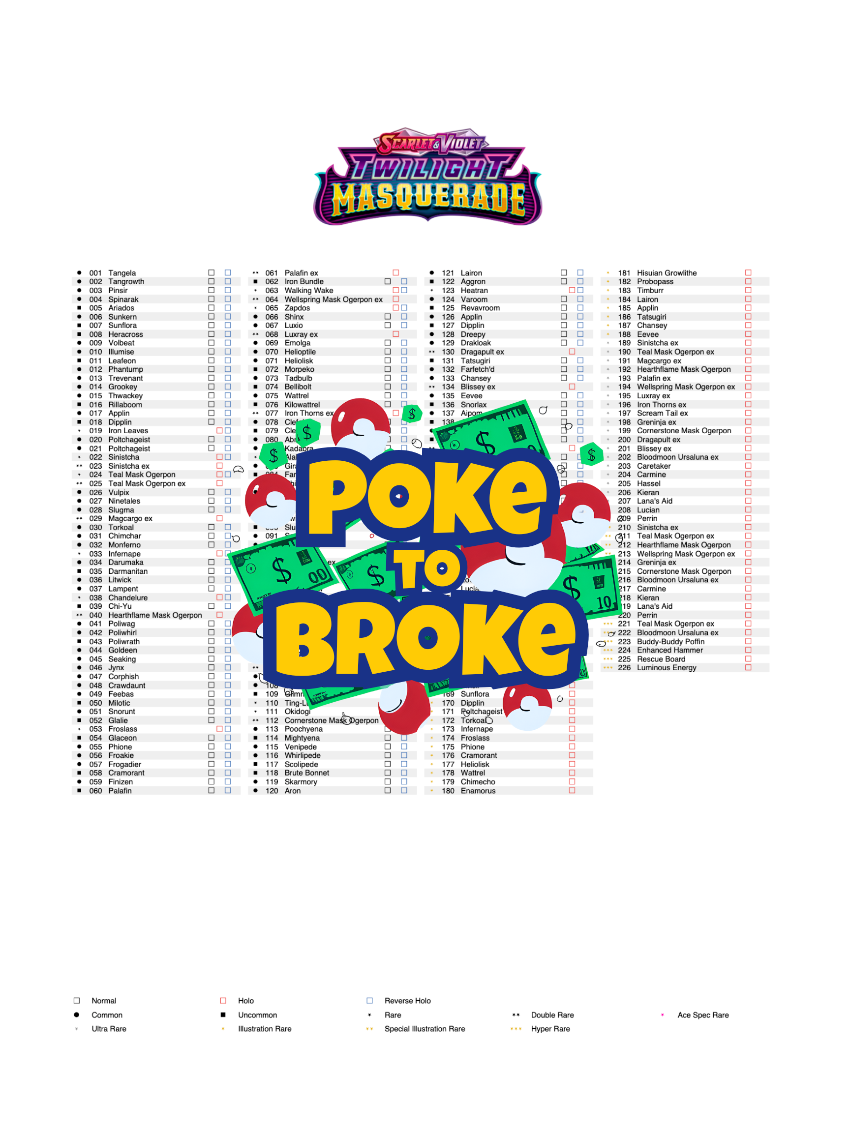 Scarlet & Violet: Twilight Masquerade Printable Master and Complete Set Binder Placeholders + Checklist (Digital Download)