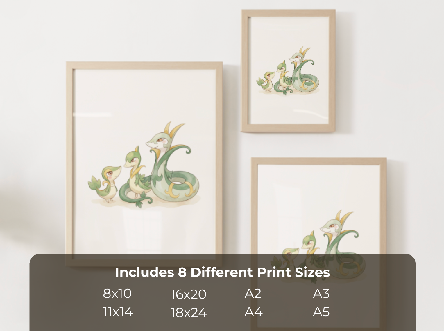 Snivy Evolution Line Wall Art Printable, Servine Serperior Poster, Pokémon Nursery Decor, Digital Download