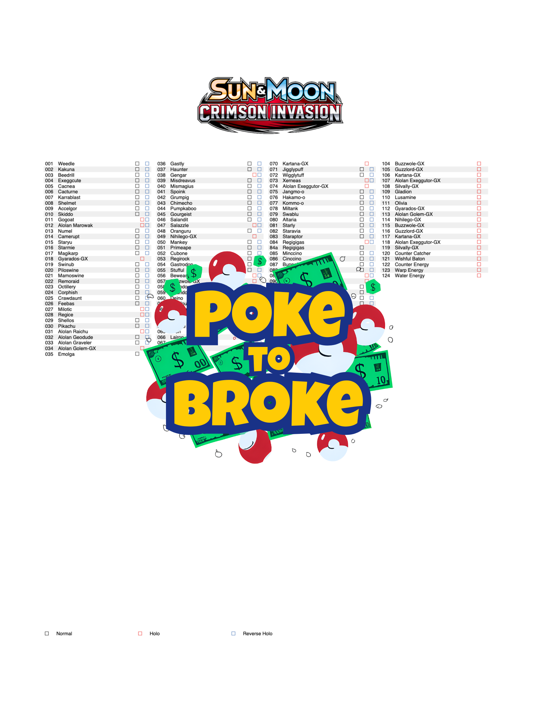 Sun & Moon: Crimson Invasion Printable Master Set Binder Placeholders + Checklist (Digital Download)