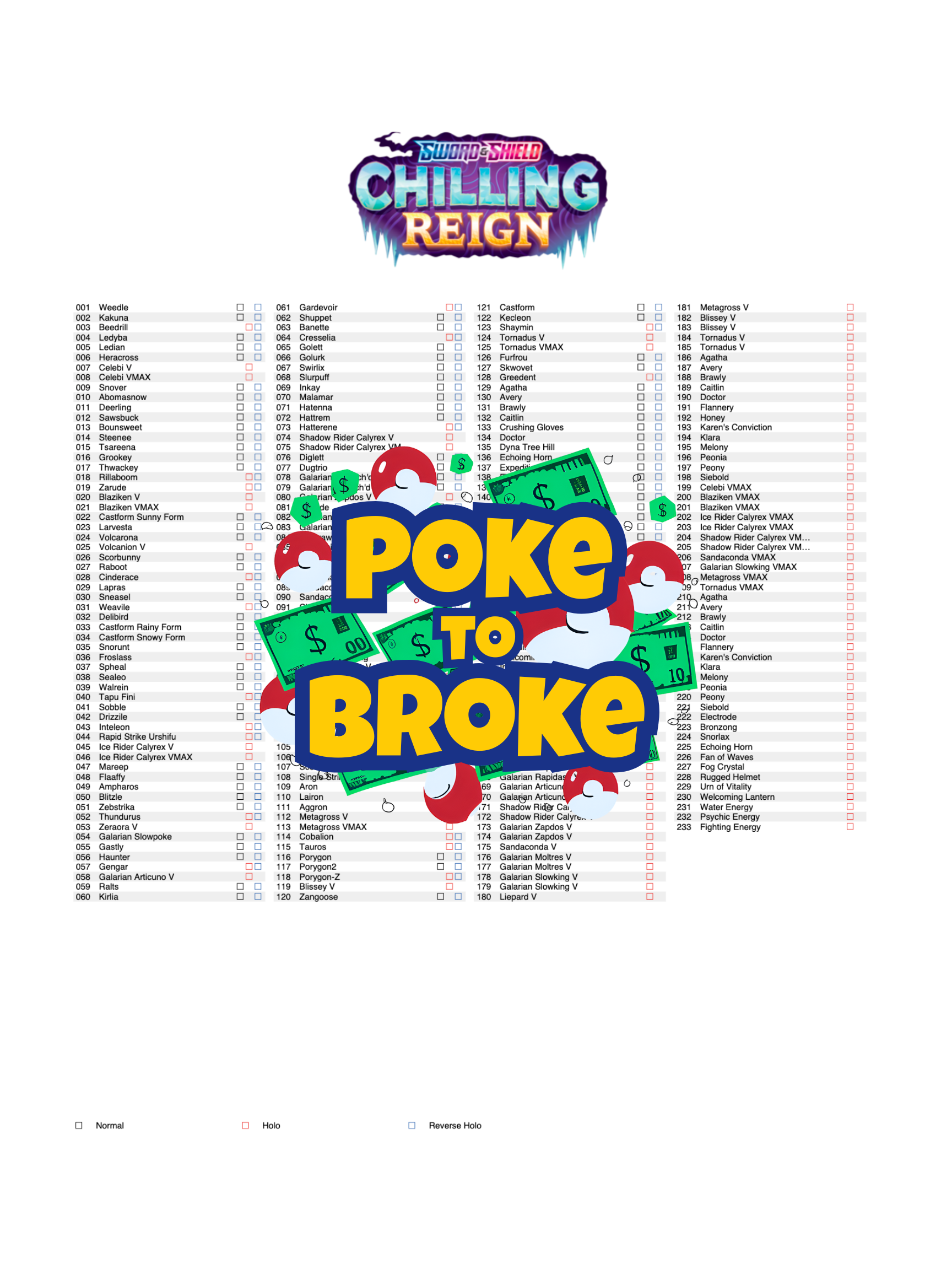 Sword & Shield: Chilling Reign Printable Master and Complete Set Binder Placeholders + Checklist (Digital Download)