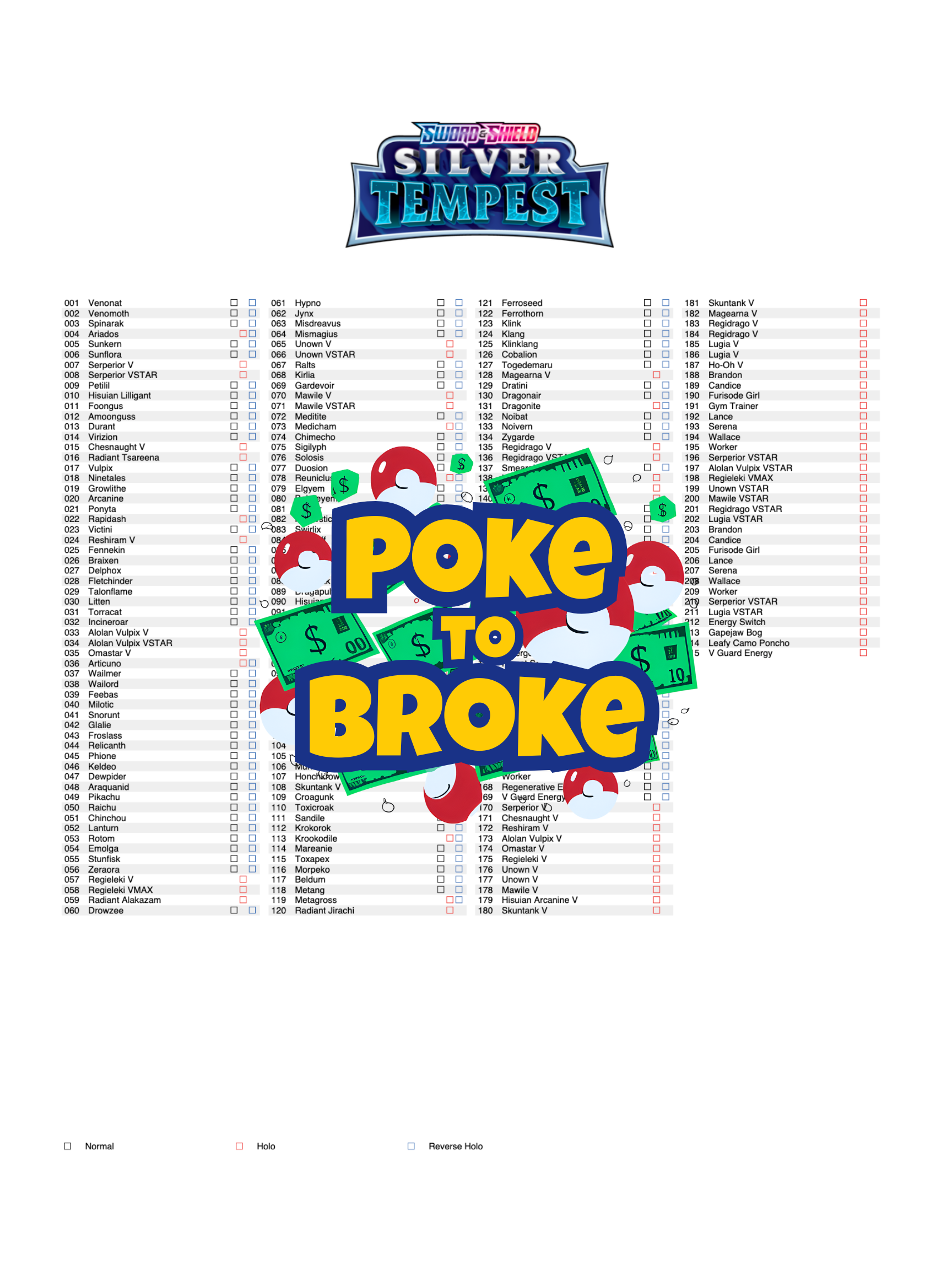 Sword & Shield: Silver Tempest Printable Master and Complete Set Binder Placeholders + Checklist (Digital Download)