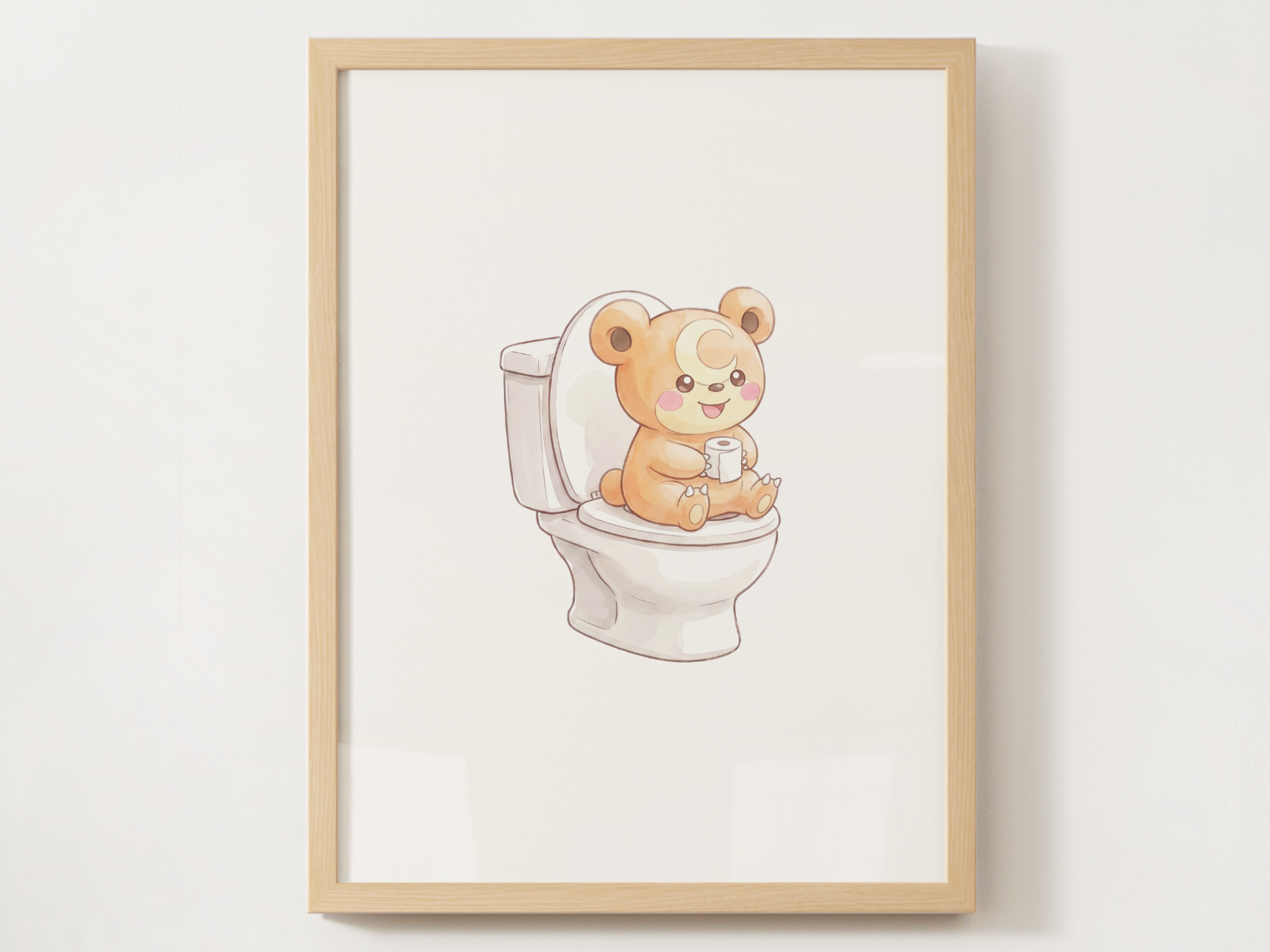 Bring Teddiursa cuteness to your washroom with this printable bathroom wall art designed to feel cute, clean, and frame ready. Soft warm tones and a centered composition keep it funny without being messy, making it a perfect fit for kids bathrooms, guest washrooms, and family powder rooms.