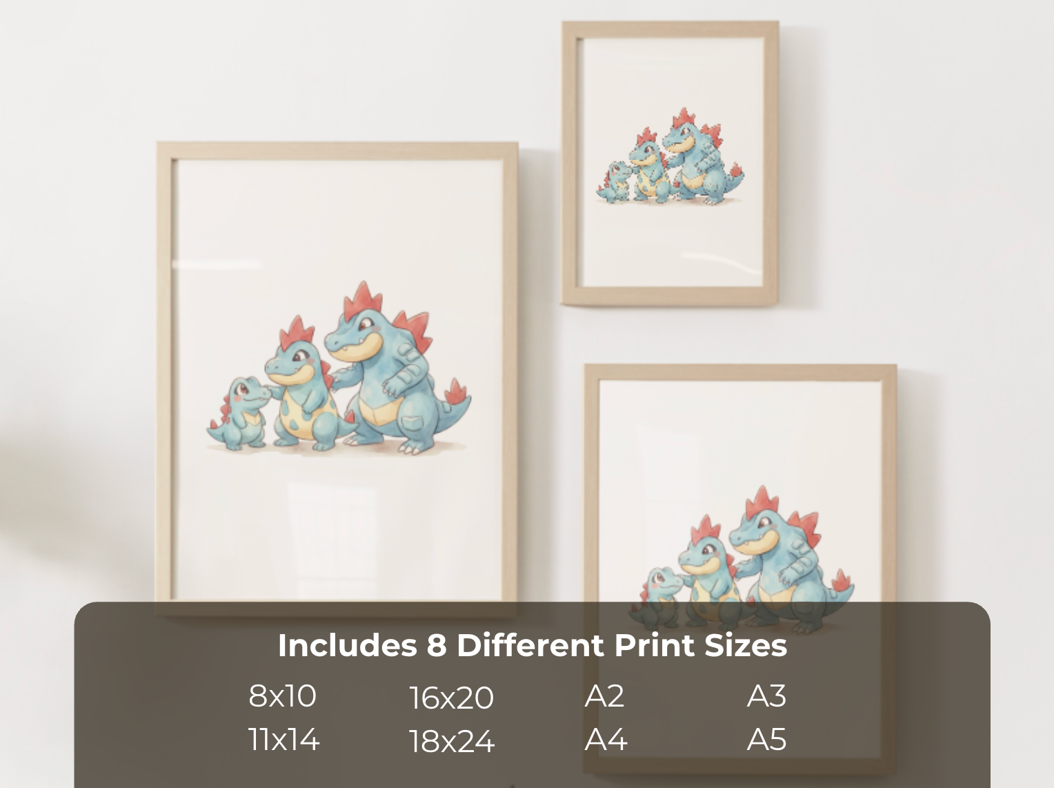 Totodile Evolution Line Wall Art Printable, Croconaw Feraligatr Poster, Pokémon Nursery Decor, Digital Download
