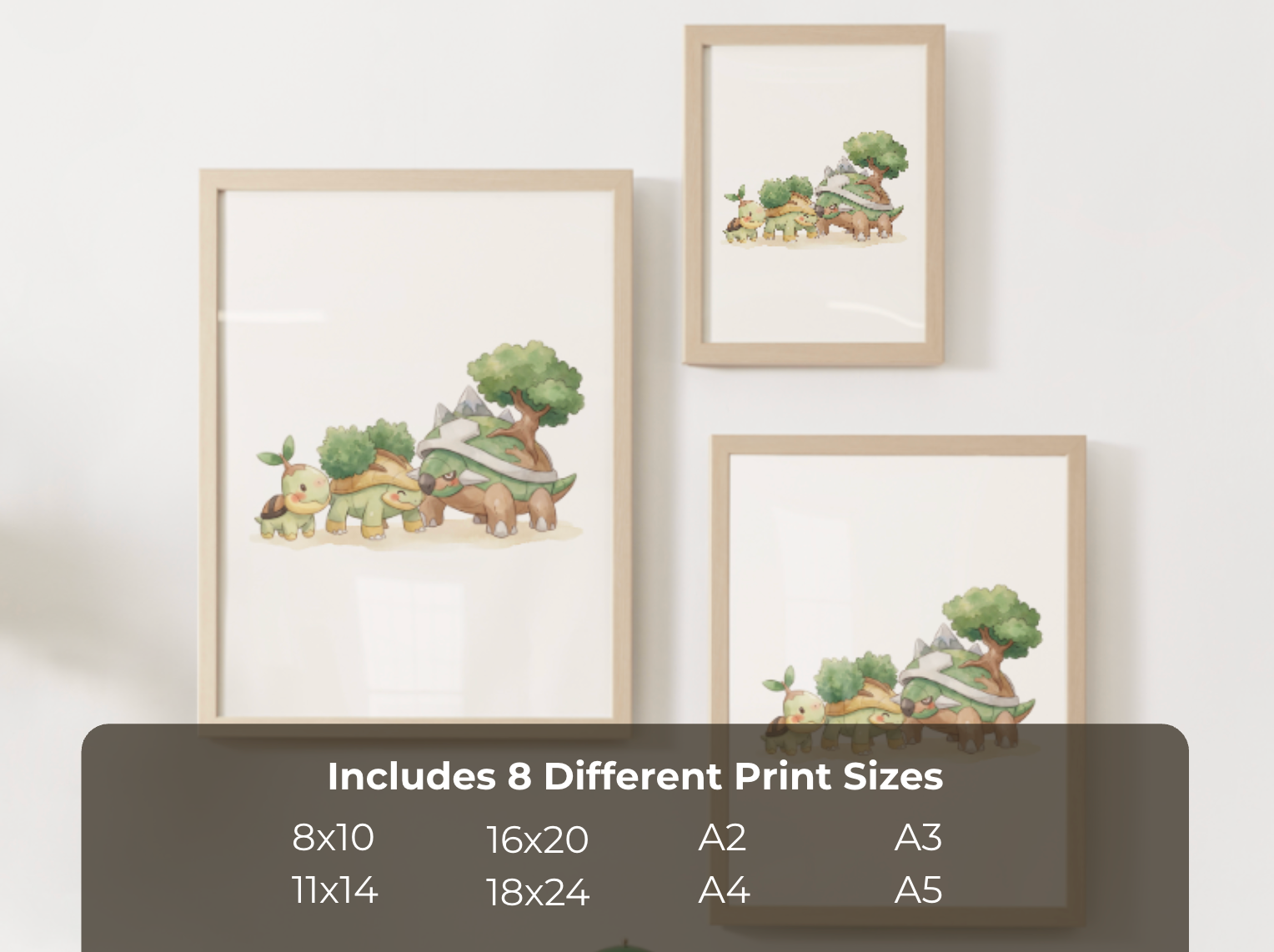 Turtwig Evolution Line Wall Art Printable, Grotle Torterra Poster, Pokémon Nursery Decor, Digital Download