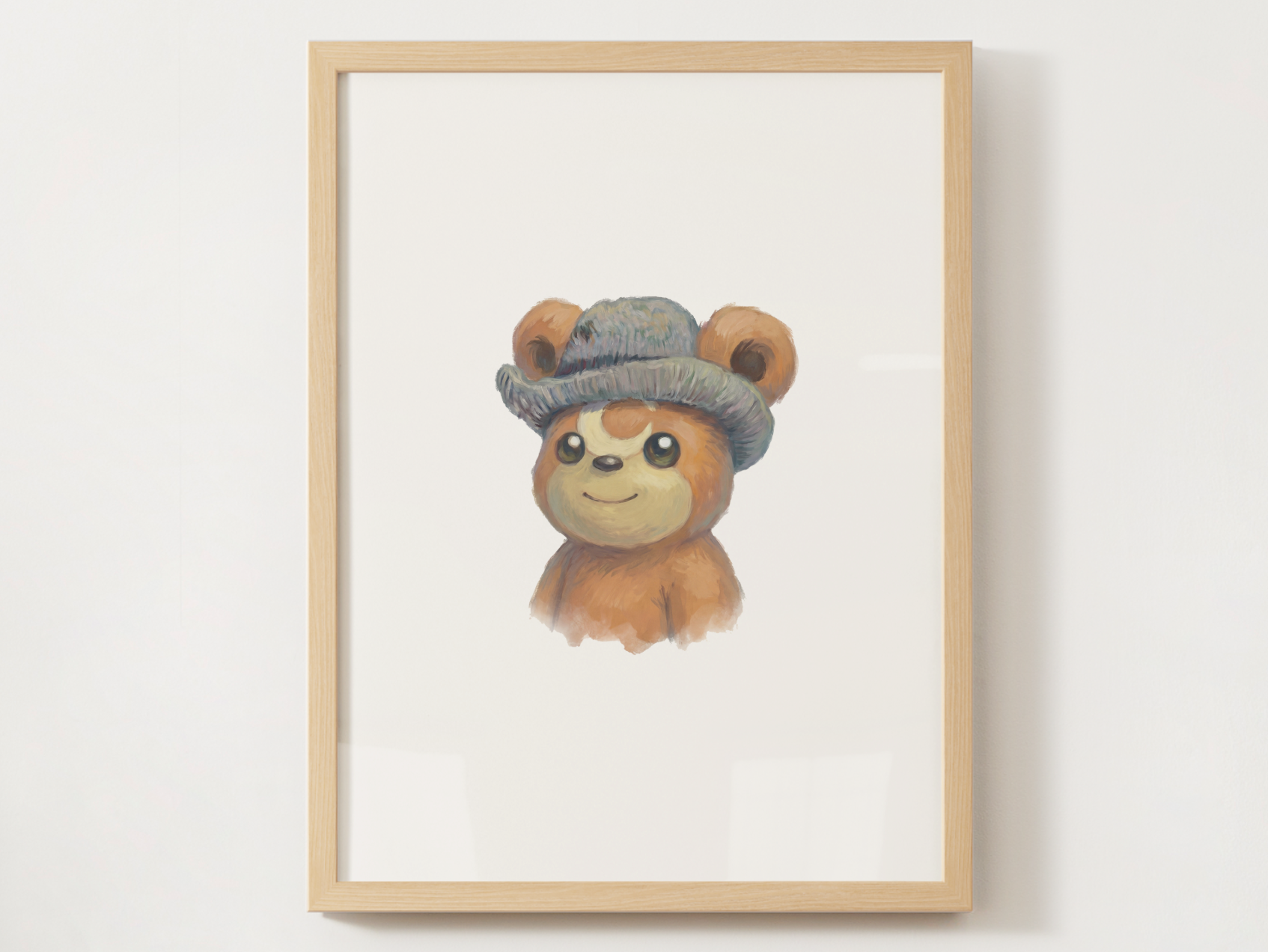 Teddiursa is loved for its teddy bear charm and cozy, gentle vibe. This Van Gogh inspired version blends classic brush texture with nostalgic Pokémon sweetness, creating a unique nursery print that still feels calm and timeless in a kids space.