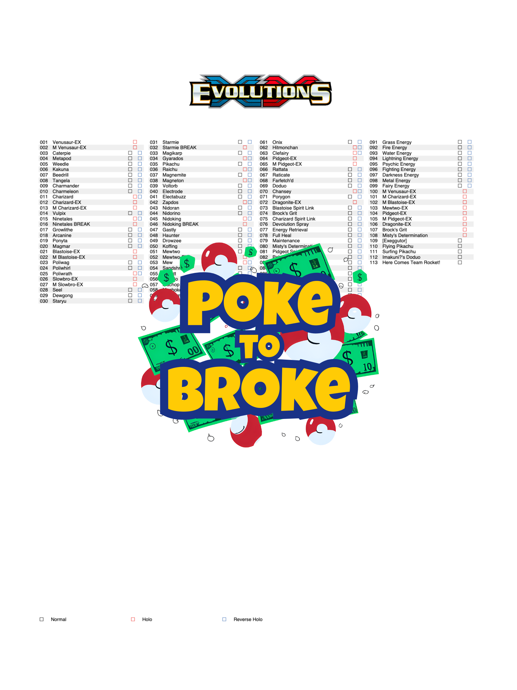 XY: Evolutions Printable Master and Complete Set Binder Placeholders + Checklist (Digital Download)